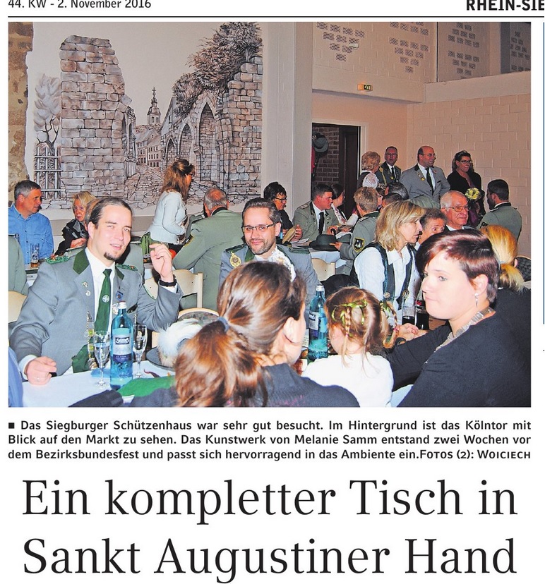 Am 23. Oktober war es wieder soweit, im Siegburger Schützenhaus fand das 64. Bezirksbundesfest des Bezirksverband Rhein Sieg statt. Der komplette Ehrentisch war durch Würdenträger der Sankt Augustiner Schützenbruderschaften belegt,wie ihr Bürgermeister Klaus Schumacher in seiner, wie immer humorvollen, Ansprache unterstrich.